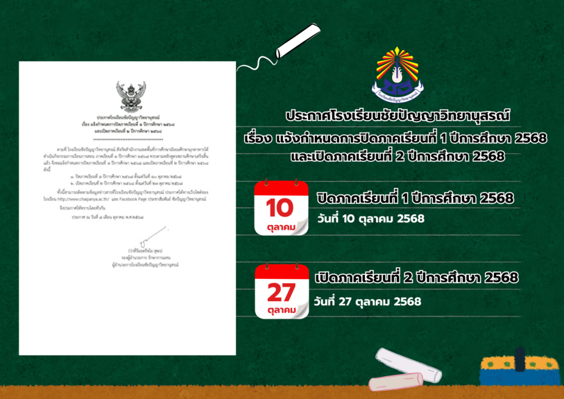 ยินดีต้อนรับเข้าสู่เว็บไซต์ โรงเรียนชัยปัญญาวิทยานุสรณ์ค่ะ...