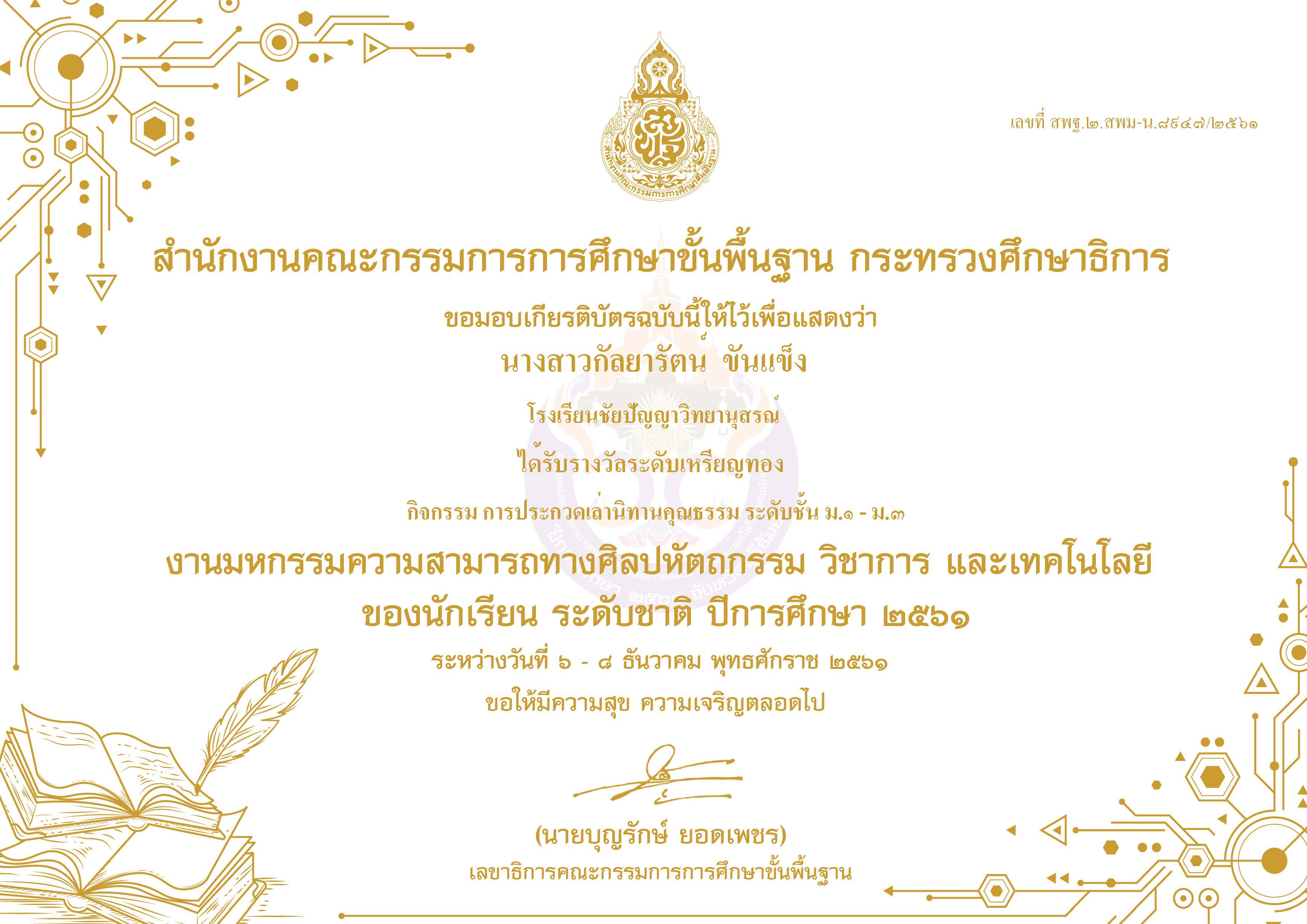 ผลงานนักเรียนระดับประเทศ