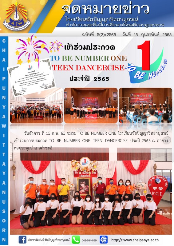 วันอังคาร ที่ 15 ก.พ. 65 ชมรม TO BE NUMBER ONE โรงเรียนชัยปัญญาวิทยานุสรณ์ เข้าร่วมการประกวด TO BE NUMBER ONE TEEN DANCERCISE ประปี 2565 ณ อาคารหอประชุมอำเภอคำชะอี