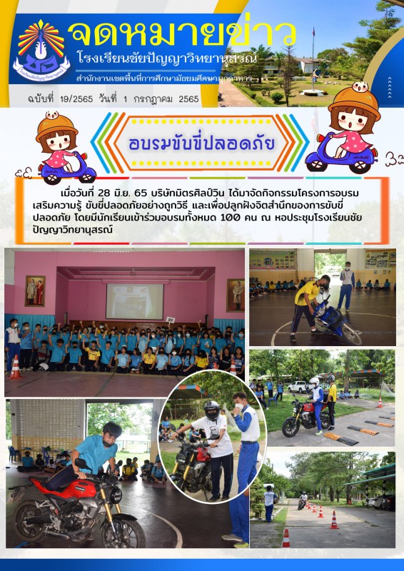 เมื่อวันที่ 28 มิ.ย. 65 บริษัทมิตรศิลป์วิน ได้มาจัดกิจกรรมโครงการอบรมเสริมความรู้ ขับขี่ปลอดภัยอย่างถูกวิธี และเพื่อปลูกฝังจิตสำนึกของการขับขี่ปลอดภัย โดยมีนักเรียนเข้าร่วมอบรมทั้งหมด 100 คน ณ หอประชุมโรงเรียนชัยปัญญาวิทยานุสรณ์