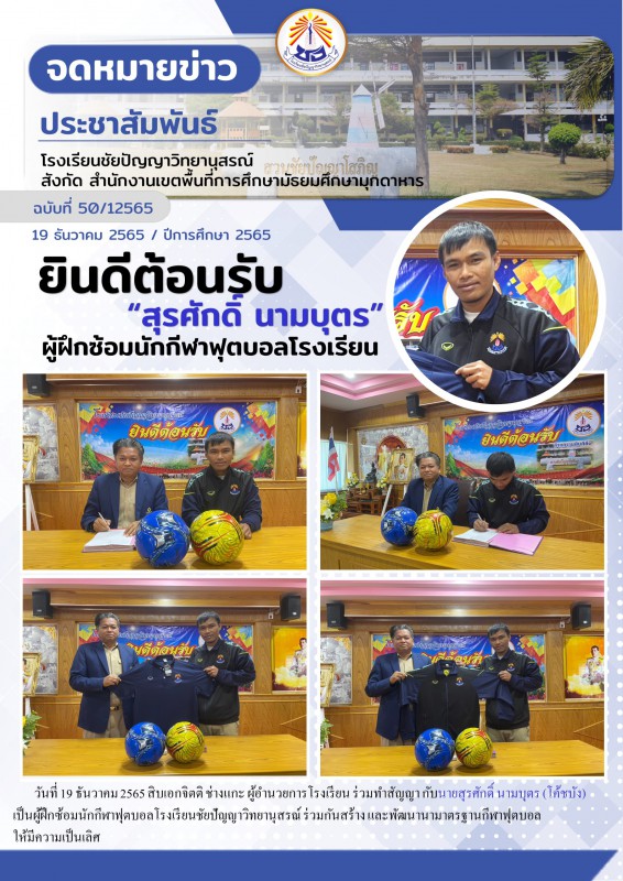 ยินดีต้อนรับ"สุรศักดิ์ นามบุตร”ผู้ฝึกซ้อมนักกีฬาฟุตบอลโรงเรียน