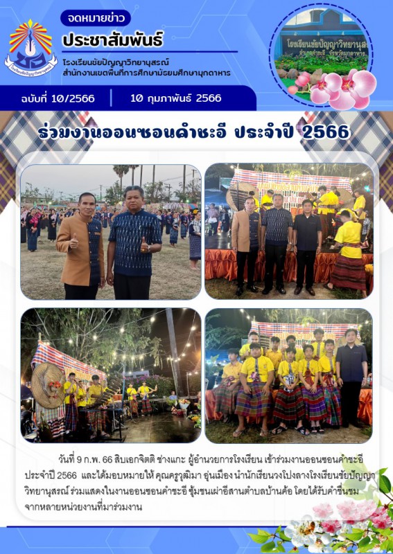 วันที่ 9 ก.พ. 66 สิบเอกจิตติ ช่างแกะ ผู้อำนวยการโรงเรียน เข้าร่วมงานออนซอนคำชะอี