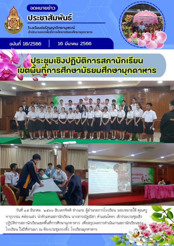 ประชุมเชิงปฏิบัติการสภานักเรียน สำนักงานเขตพื้นที่การศึกษามัธยมศึกษามุกดาหาร