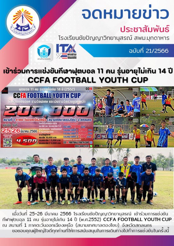 เข้าร่วมการแข่งขันฟุตบอล 11 คน รุ่นอายุไม่เกิน 14 ปี CCFA FOOTBALL YOUTH CUP