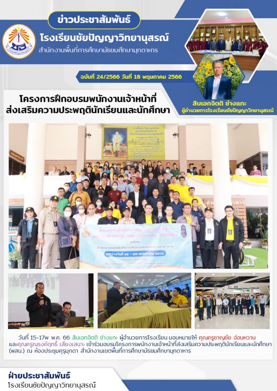 โครงการฝึกอบรมพนักงานเจ้าหน้าที่ ส่งเสริมความประพฤตินักเรียนและนักศึกษา