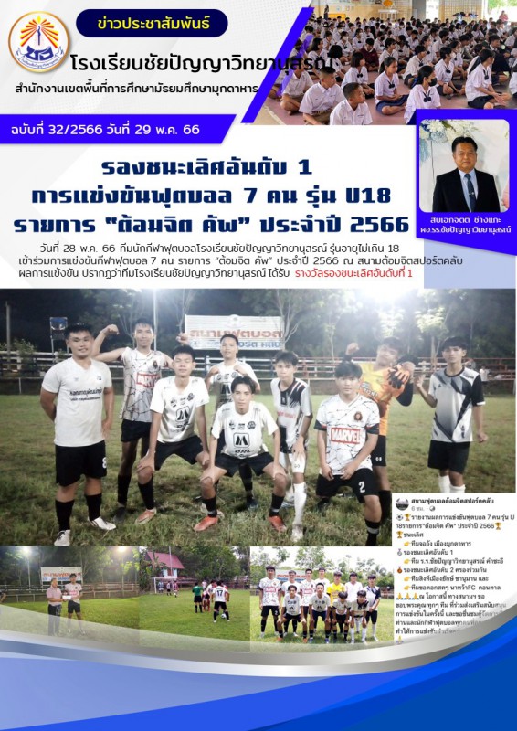 รองชนะเลิศอันดับ 1 การแข่งขันฟุตบอล 7 คน รุ่น U18 รายการ “ต้อมจิต คัพ” ประจำปี 2566