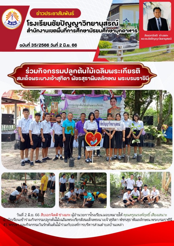 ร่วมกิจกรรมปลูกต้นไม้เฉลิมพระเกียรติ สมเด็จพระนางเจ้าสุทิดา พัชรสุธาพิมลลักษณ พระบรมราชินี