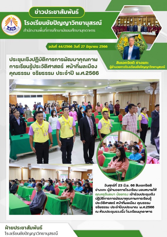 ประชุมเชิงปฏิบัติการการพัฒนาคุณภาพการเรียนรู้ประวัติศาสตร์ หน้าที่พลเมือง คุณธรรม จริยธรรม ประจำปี พ.ศ.2566