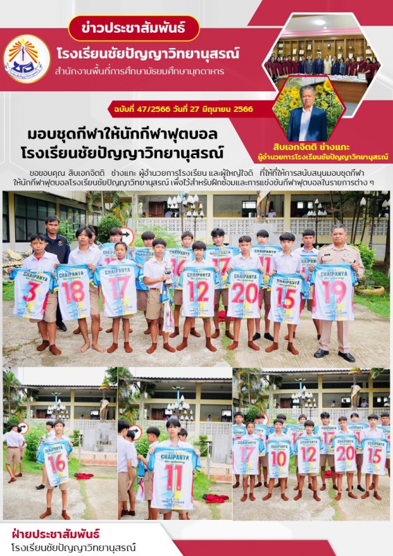 มอบชุดกีฬาให้นักกีฬาฟุตบอล โรงเรียนชัยปัญญาวิทยานุสรณ์