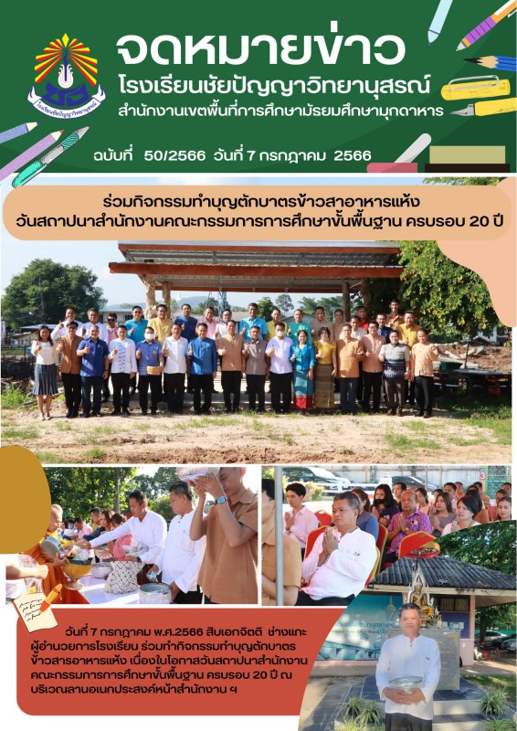 ร่วมทำกิจกรรมทำบุญตักบาตรข้าวสารอาหารแห้ง เนื่องในโอกาสวันสถาปนาสำนักงานคณะกรรมการการศึกษาขั้นพื้นฐาน ครบรอบ 20 ปี