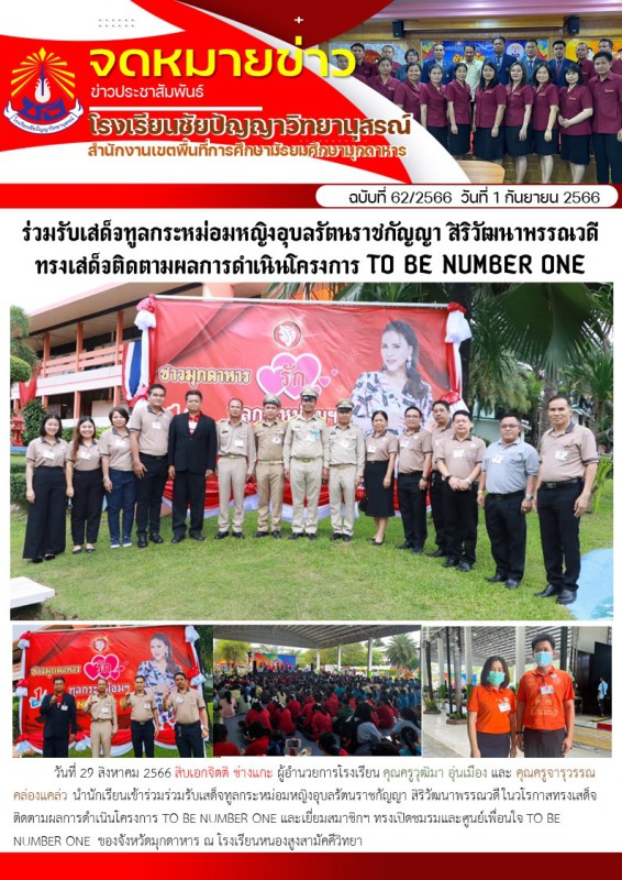 ร่วมรับเสด็จทูลกระหม่อมหญิงอุบลรัตนราชกัญญา สิริวัฒนาพรรณวดี ทรงเสด็จติดตามผลการดำเนินโครงการ TO BE NUMBER ONE