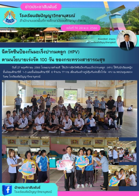 ฉีดวัคซีนป้องกันมะเร็งปากมดลูก (HPV) ตามนโยบายเร่งรัด 100 วัน ของกระทรวงสาธารณสุข
