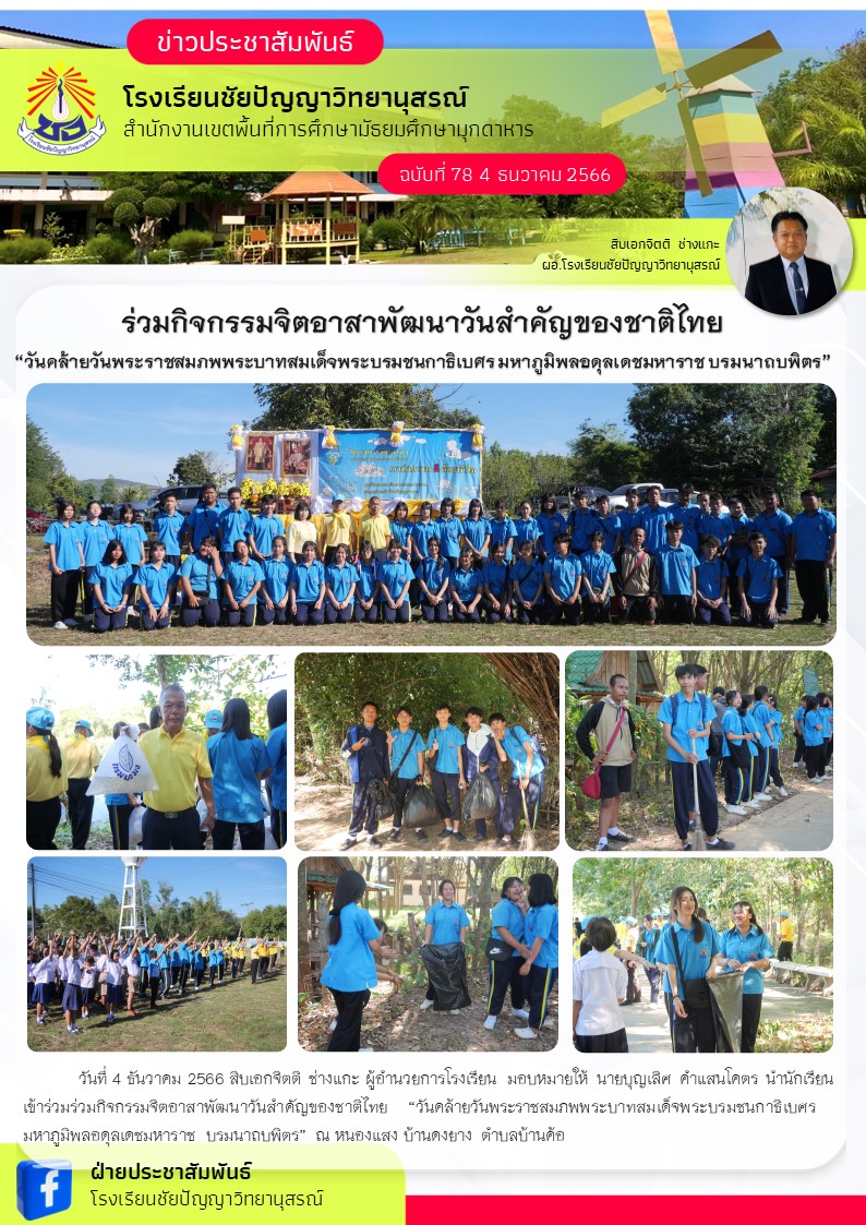 ร่วมกิจกรรมจิตอาสาพัฒนาวันสำคัญของชาติไทย “วันคล้ายวันพระราชสมภพพระบาทสมเด็จพระบรมชนกาธิเบศร มหาภูมิพลอดุลเดชมหาราช บรมนาถบพิตร”