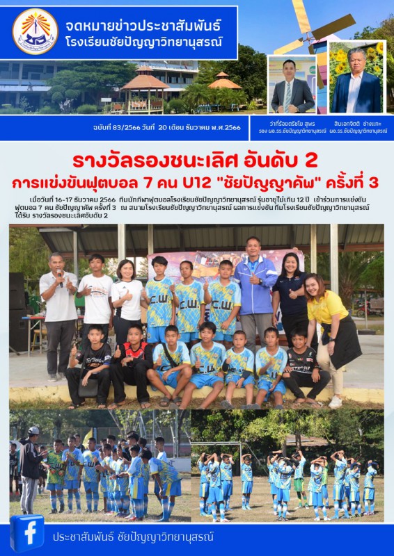 รางวัลรองชนะเลิศ อันดับ 2 การแข่งขันฟุตบอล 7 คน U12 “ชัยปัญญาคัพ” ครั้งที่ 3