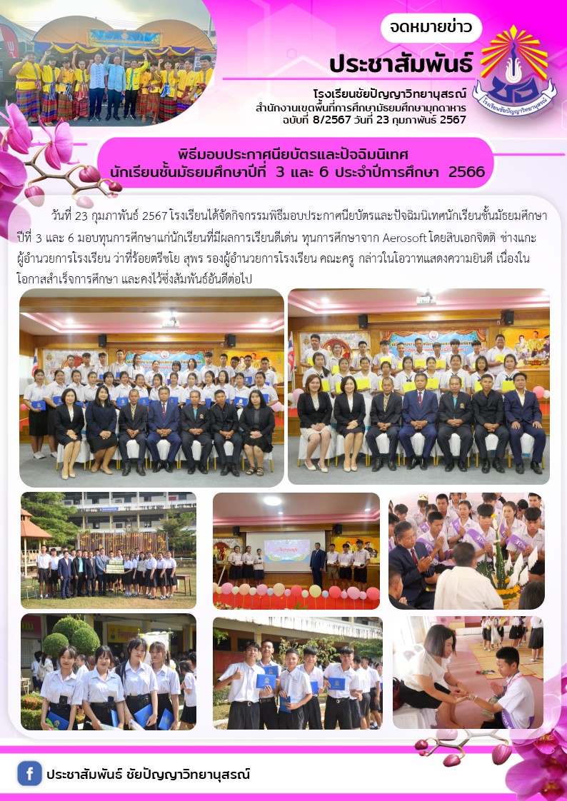 พิธีมอบประกาศนียบัตรและปัจฉิมนิเทศนักเรียนชั้ยมัธยมศึกษาปีที่ 3 และ 6