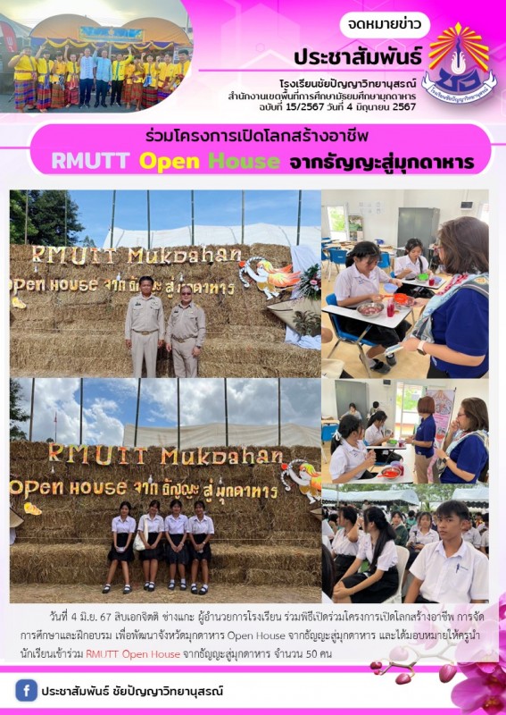ร่วมโครงการเปิดโลกสร้างอาชีพ RMUTT Open House จากธัญญะสู่มุกดาหาร