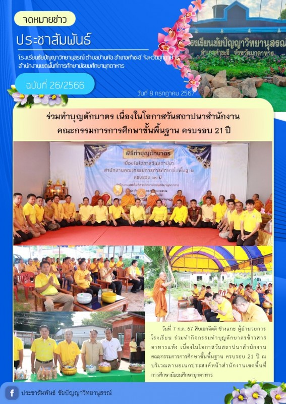 ร่วมทำบุญตักบาตรข้าวสารอาหารแห้ง เนื่องในโอกาสวันสถาปนาสำนักงานคณะกรรมการการศึกษาขั้นพื้นฐาน ครบรอบ 21 ปี