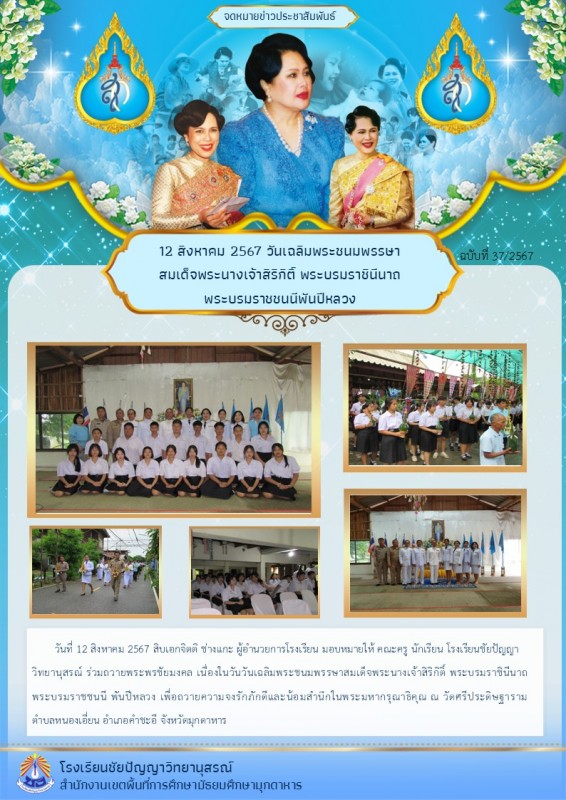 กิจกรรมถวายพระพรชัยมงคลสมเด็จพระนางเจ้าสิริกิติ์ พระบรมราชินีนาถ พระบรมราชชนนีพันปีหลวง ณ วัดศรีประดิษฐานราม บ้านหนองบง ตำบลหนองเอี่ยน จังหวัดมุกดาหาร