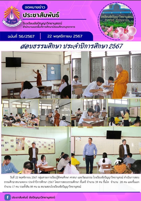 สอบธรรมศึกษา ปีการศึกษา 2567