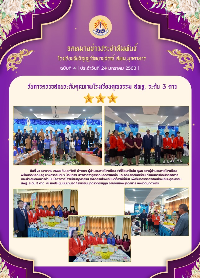 รับการตรวจสอบระดับคุณภาพโรงเรียนคุณธรรม สพฐ. ระดับ 3 ดาว