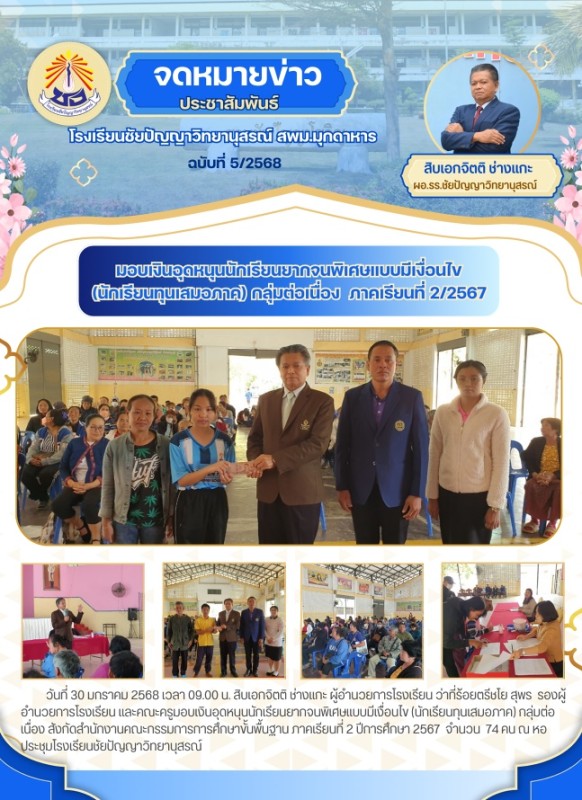 มอบเงินอุดหนุนนักเรียนยากจนพิเศษแบบมีเงื่อนไข (นักเรียนทุนเสมอภาค) กลุ่มต่อเนื่อง สังกัดสำนักงานคณะกรรมการการศึกษาขั้นพื้นฐาน ภาคเรียนที่ 2/2567