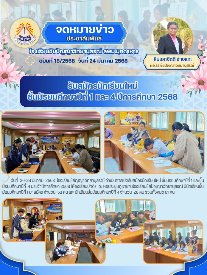 รับสมัครนักเรียนใหม่ ชั้นมัธยมศึกษาปีที่ 1 และ 4 ปีการศึกษา 2568