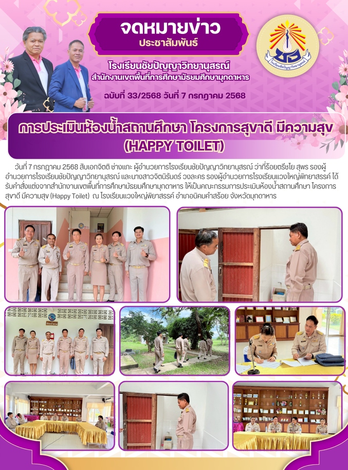 การประเมินห้องน้ำสถานศึกษา โครงการสุขาดี มีความสุข (Happy Toilet)