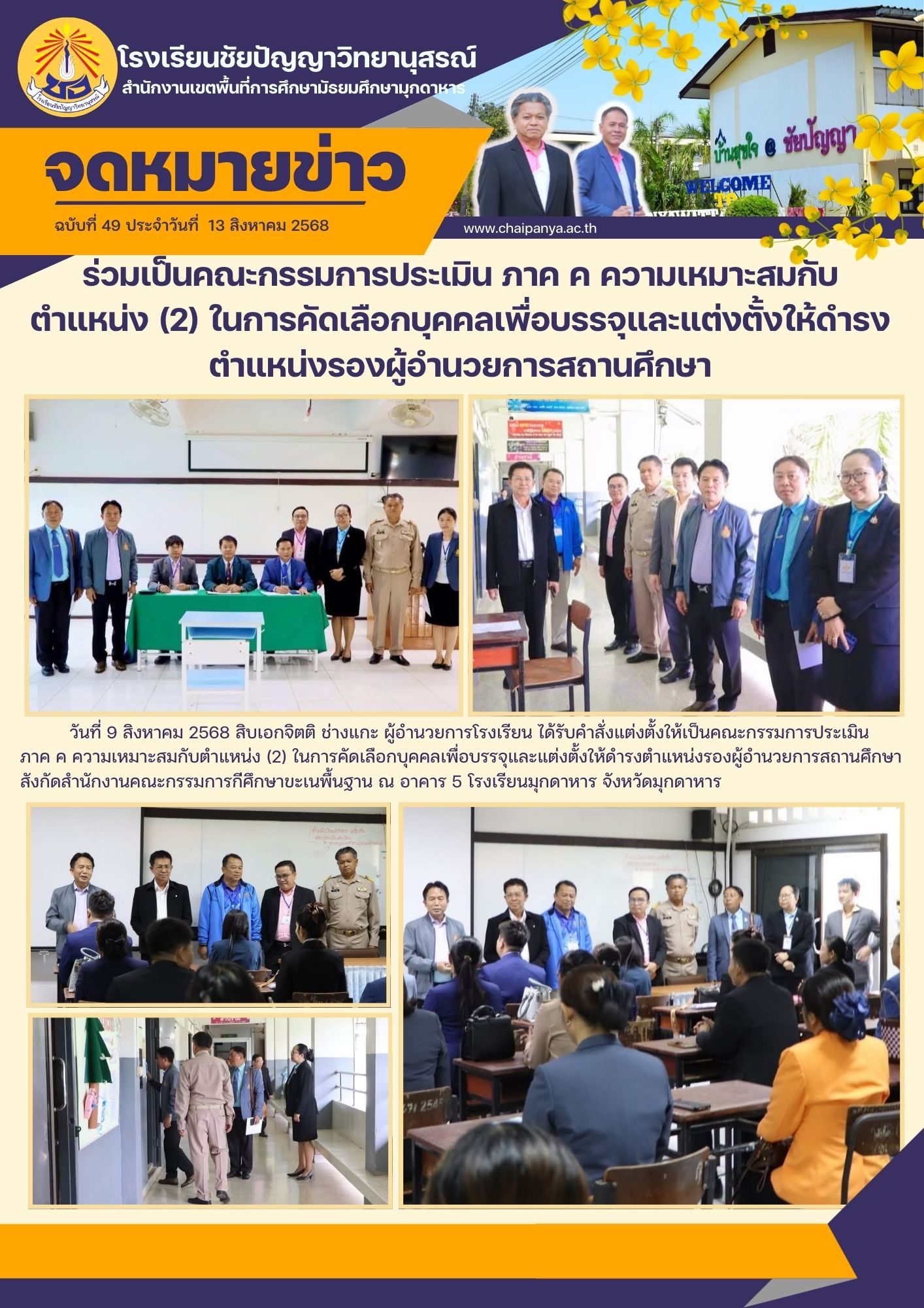 ร่วมเป็นคณะกรรมการประเมิน ภาค ค ความเหมาะสมกับตำแหน่ง (2) ในการคัดเลือกบุคคลเพื่อบรรจุและแต่งตั้งให้ดำรงตำแหน่งรองผู้อำนวยการสถานศึกษา