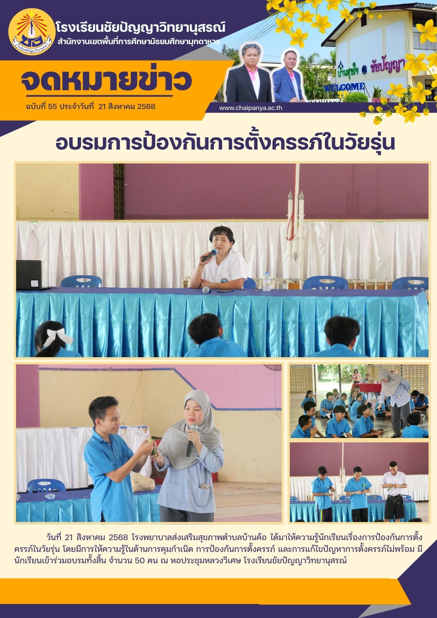 วันที่ 21 สิงหาคม 2568 โรงพยาบาลส่งเสริมสุขภาพตำบลบ้านค้อ ได้มาให้ความรู้นักเรียนเรื่องการป้องกันการตั้งครรภ์ในวัยรุ่น โดยมีการให้ความรู้ในด้านการคุมกำเนิด การป้องกันการตั้งครรภ์ และการแก้ไขปัญหาการตั้งครรภ์ไม่พร้อม มีนักเรียนเข้าร่วมอบรมทั้งสิ้น จำนวน 50 คน ณ หอประชุมหลวงวิเศษ โรงเรียนชัยปัญญาวิทยานุสรณ์ |