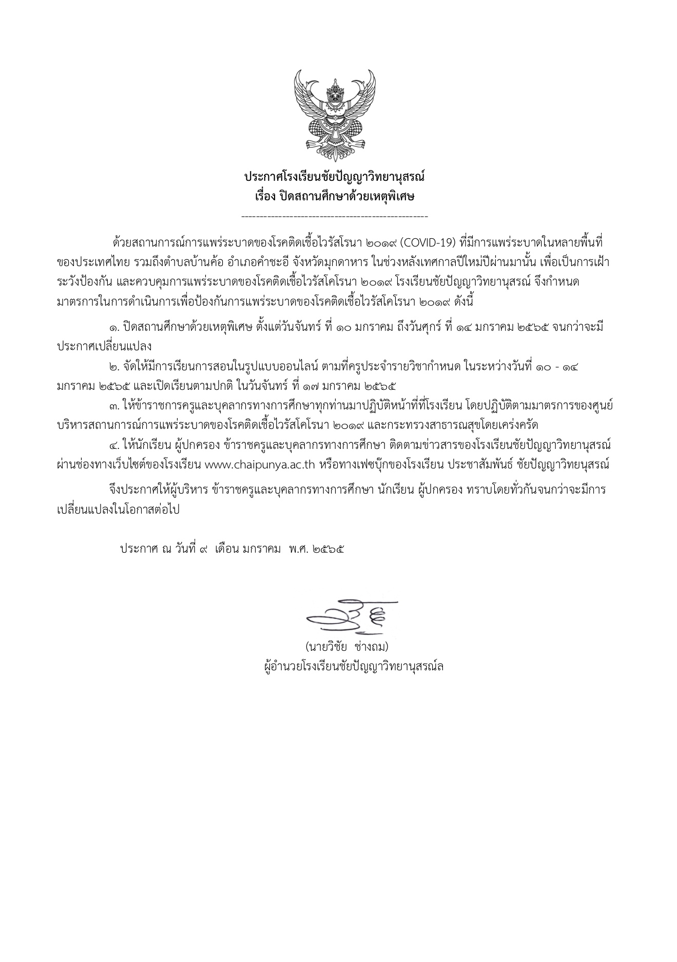 ประกาศปิดสถานศึกษาด้วยเหตุพิเศษ